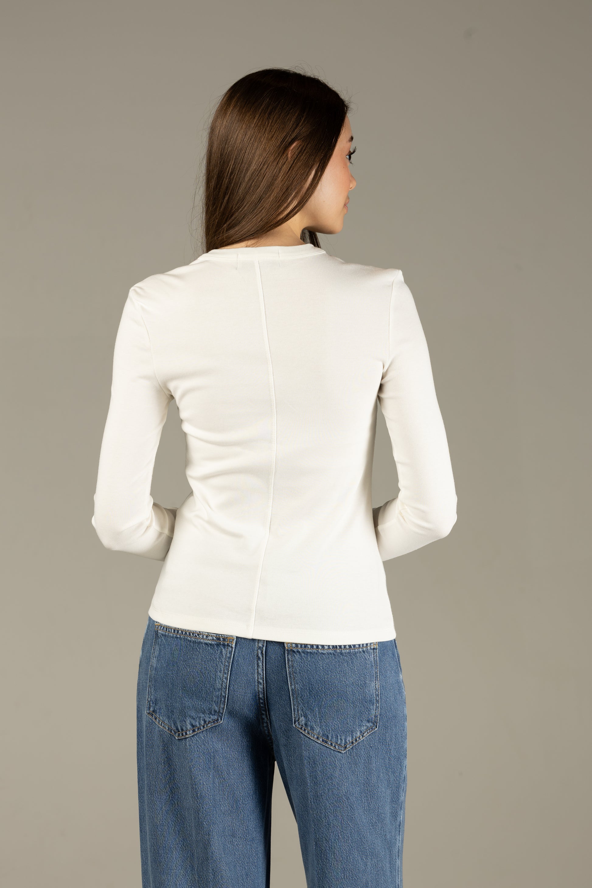 Deze off white longsleeve is een tijdloze basic die niet mag ontbreken in je garderobe. De zachte en comfortabele stof zorgt voor een mooie aansluitende pasvorm. Perfect om te dragen als basis onder blazers, vesten of gewoon casual te combineren met jeans of een pantalon.
